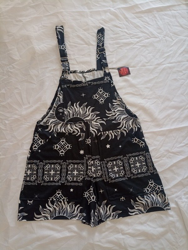 Jardinero cortito con estampado de soles. Con dos bolsillos en el shorcito y otro bolsillo delantero en la pechera. El modelo es sueltito!